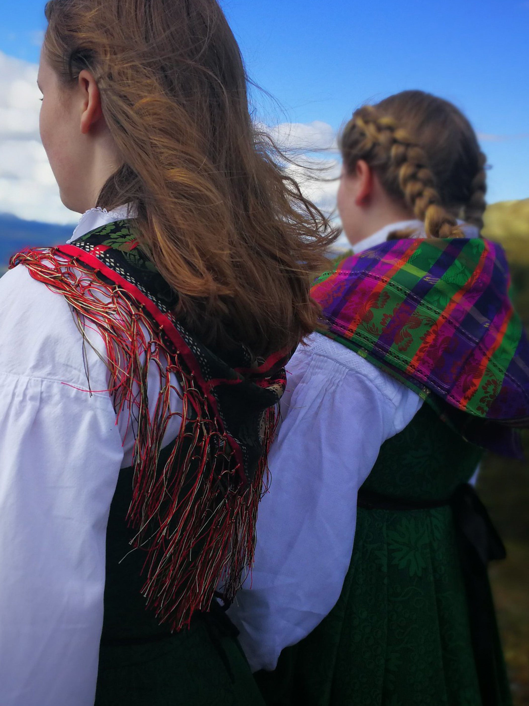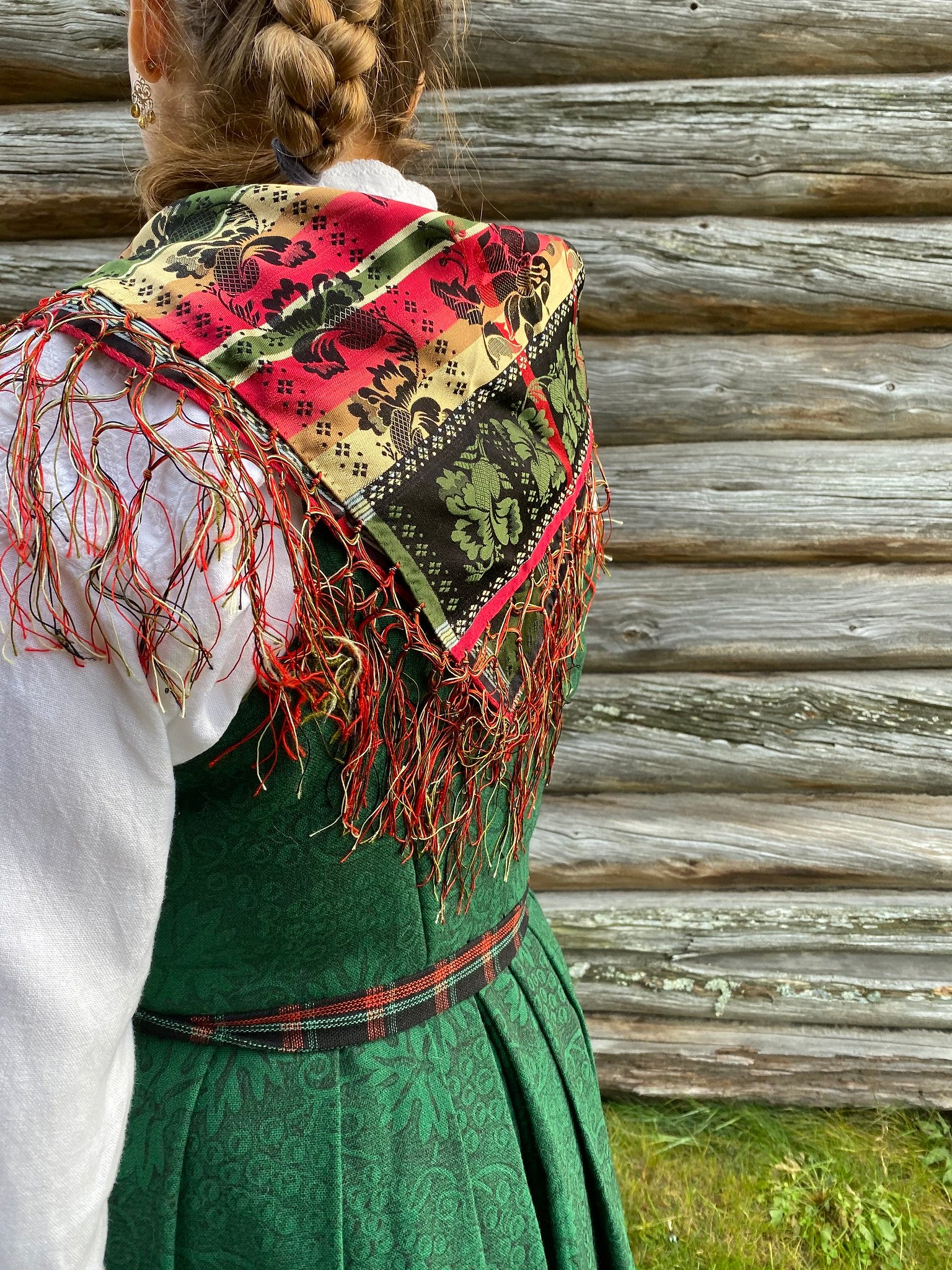 Til gammel Alvdalsbunad er det valgfritt silkesjal til bunaden. Velg de farger og mønster som du selv ønsker. Sjalet kan være med eller uten frynser.