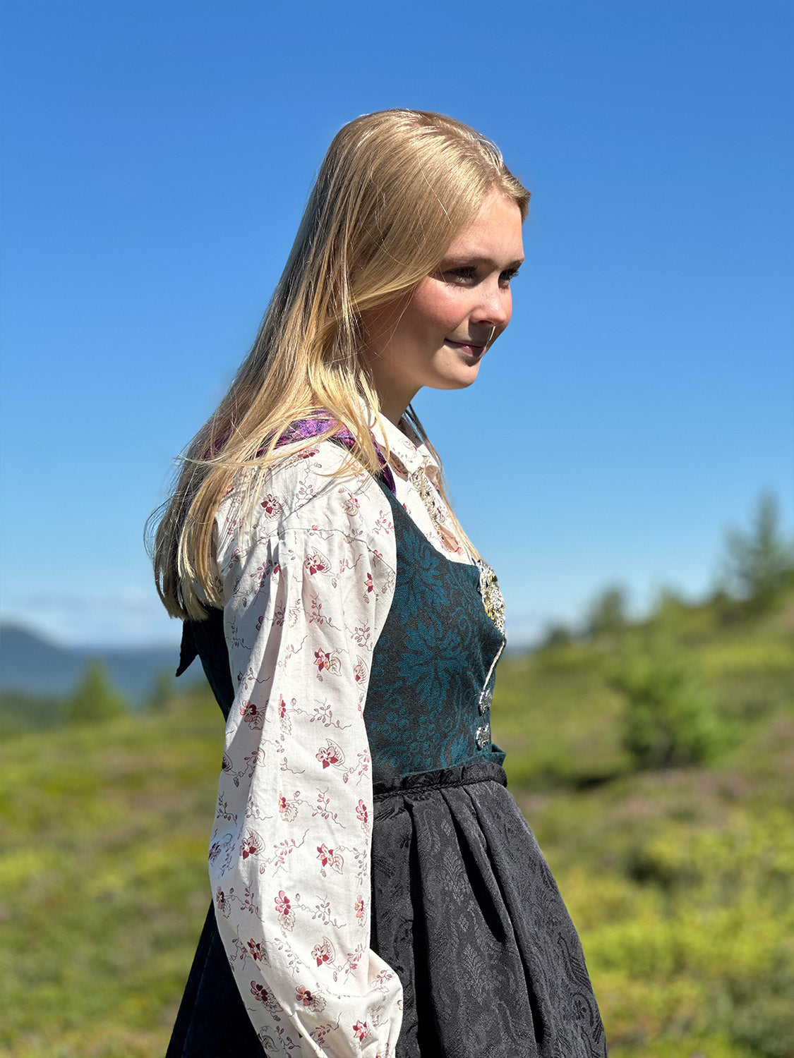 *For bunad med livvidde over 110 cm må tillegg i pris beregnes. Skjorte, sølv og tilbehør kommer i tillegg.