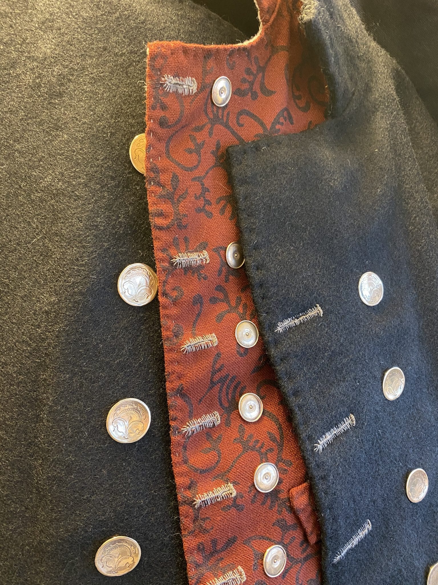 Pris for ferdig sydd bunad (bukse, vest og jakke) inkludert materiell og knapper og knespenner: